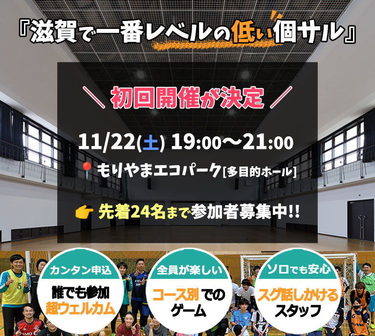 2025年11月より、守山市を中心に個サル(個人参加型フットサル)を開催スタートします。